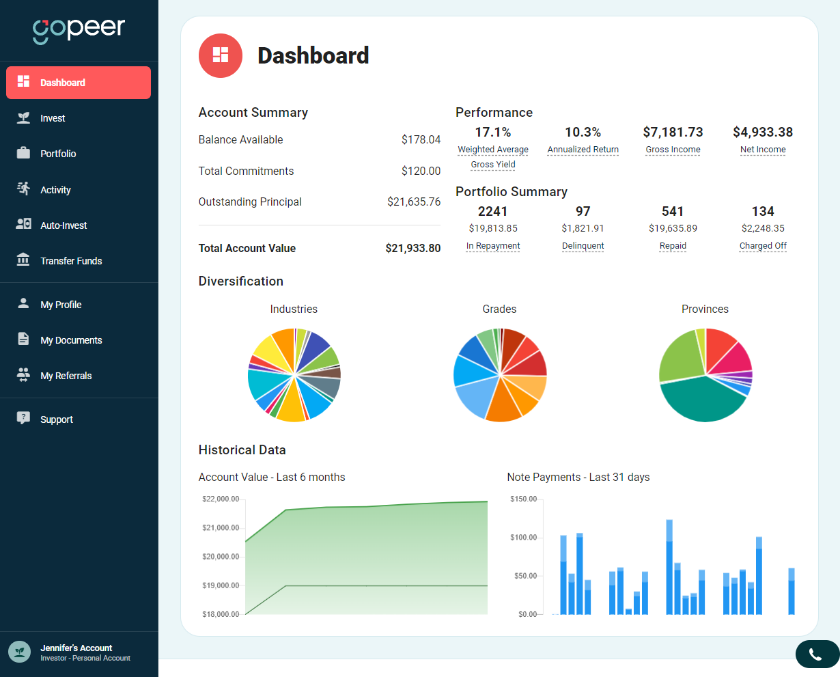 After you have set up your account you will have access to our Investor Portal, which allows you to access the platform, view your portfolio, monitor returns, and much more. You’ll also receive monthly account statements with investment information including portfolio holdings, payment history, and unpaid principal balance.
